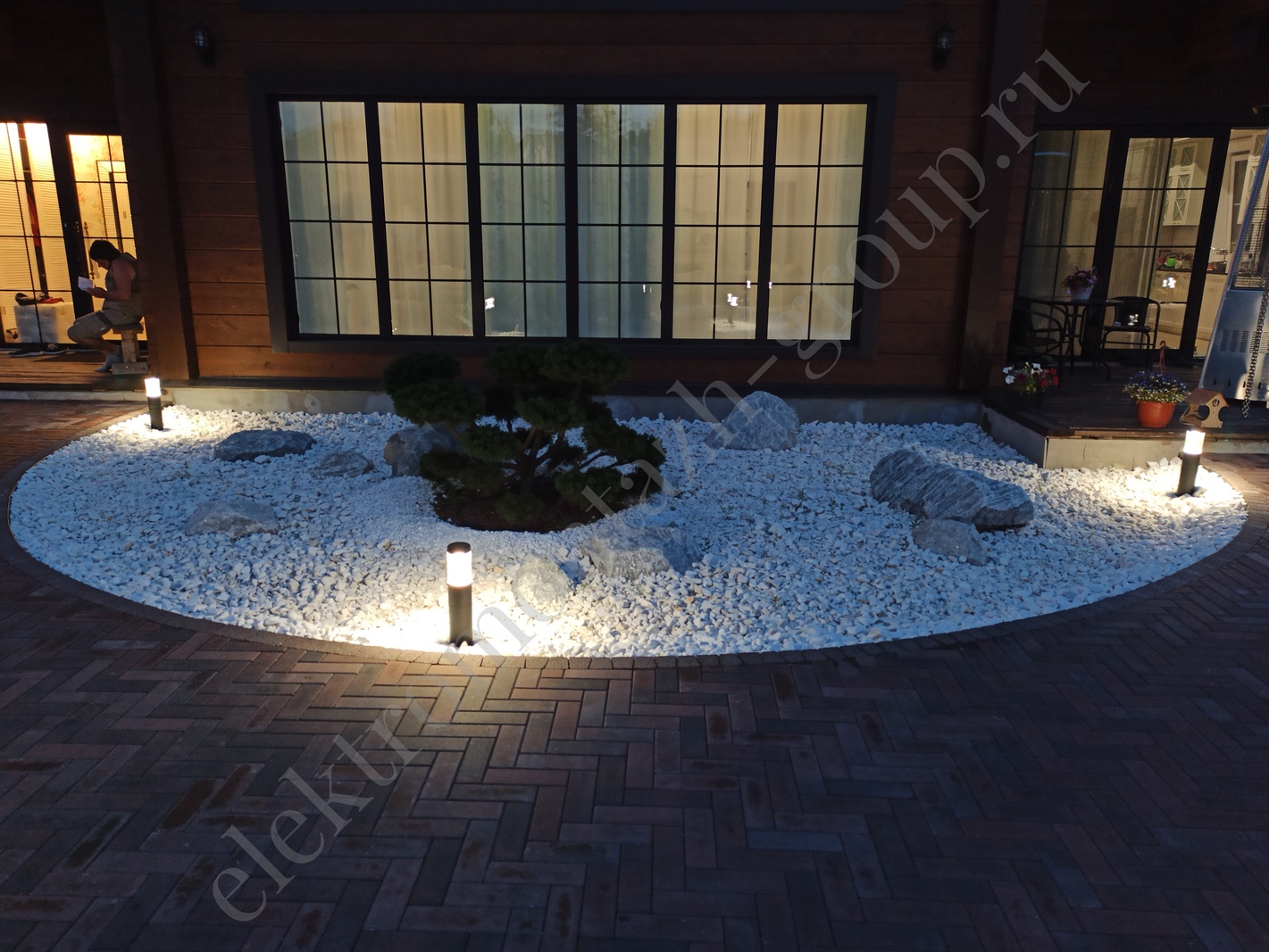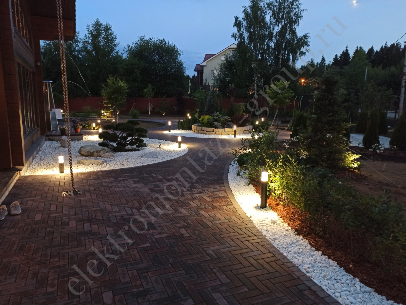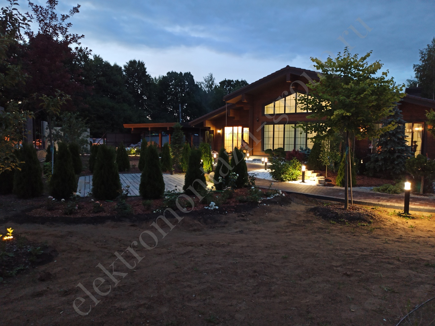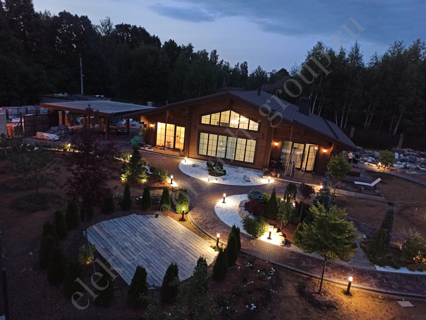 Многие люди бывали в загородных парк-отелях, где территория красиво освещается, дорожки, растения и объекты сооружения, но и это возможно на вашем загородном участке, приезжая с работы, вы наблюдаете очень красивую для глаз картинку, и получаете от этого эстетическое удовольствие. Данный проект выполнен на базе умного дома от компании HITE PRO, всё уличное освещение включается по заходу солнца автоматически, управление из приложения, ну и пару выключателей для возможности ручного управления.